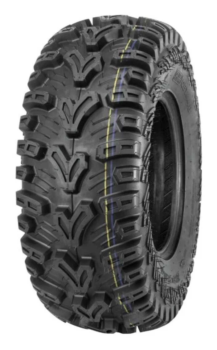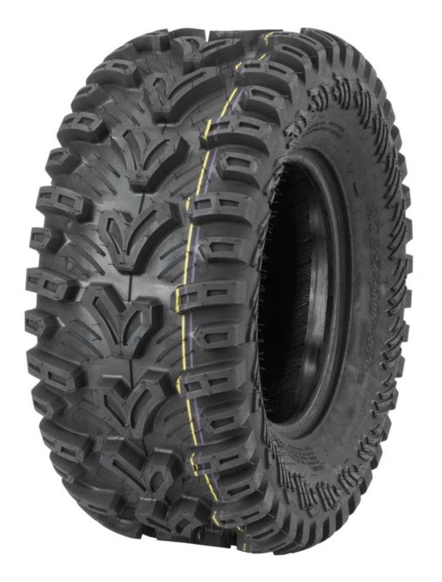 The 448 Utility Tires from Quad Boss use a V-shaped lug pattern to boost grip while offering good behavior over hard pack. Rolling resistance is reduced. This same tread characteristic improves tread life and keep road noise low. Staggered shoulder knobs increase cornering bite and stability. The 448 Utility Tire’s multi-purpose design excels over a wide variety of terrains.Ā