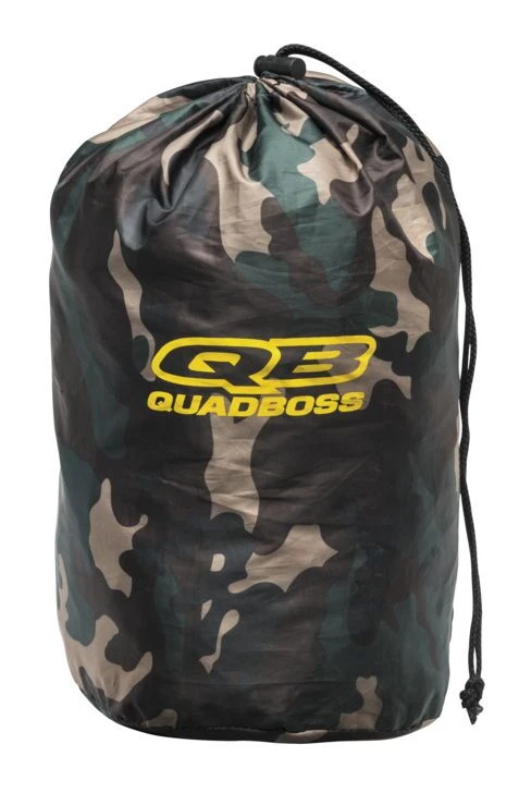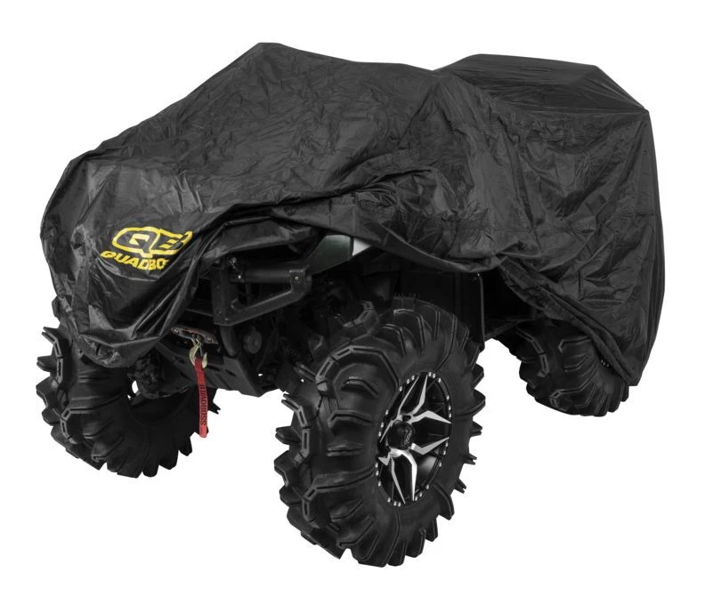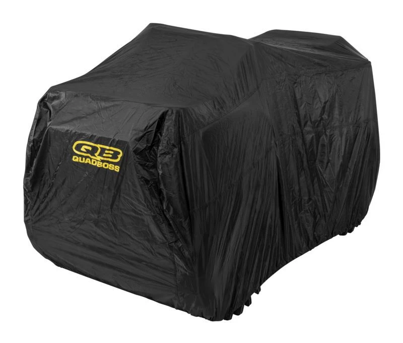 Save the rough conditions for the ride. Protect your quad from the elements and the unexpected perils of storage with this cover. Heavy-duty, water-repellent nylon. Durable construction is UV-resistant. Double-stitched interlocking seams for added strength. Elastic hem cord ensures a tight fit in wind and rain. 2XL size fits units with attached drop baskets, mesh racks, plows, spreaders, etc. Handy storage bag is sewn into the cover.
