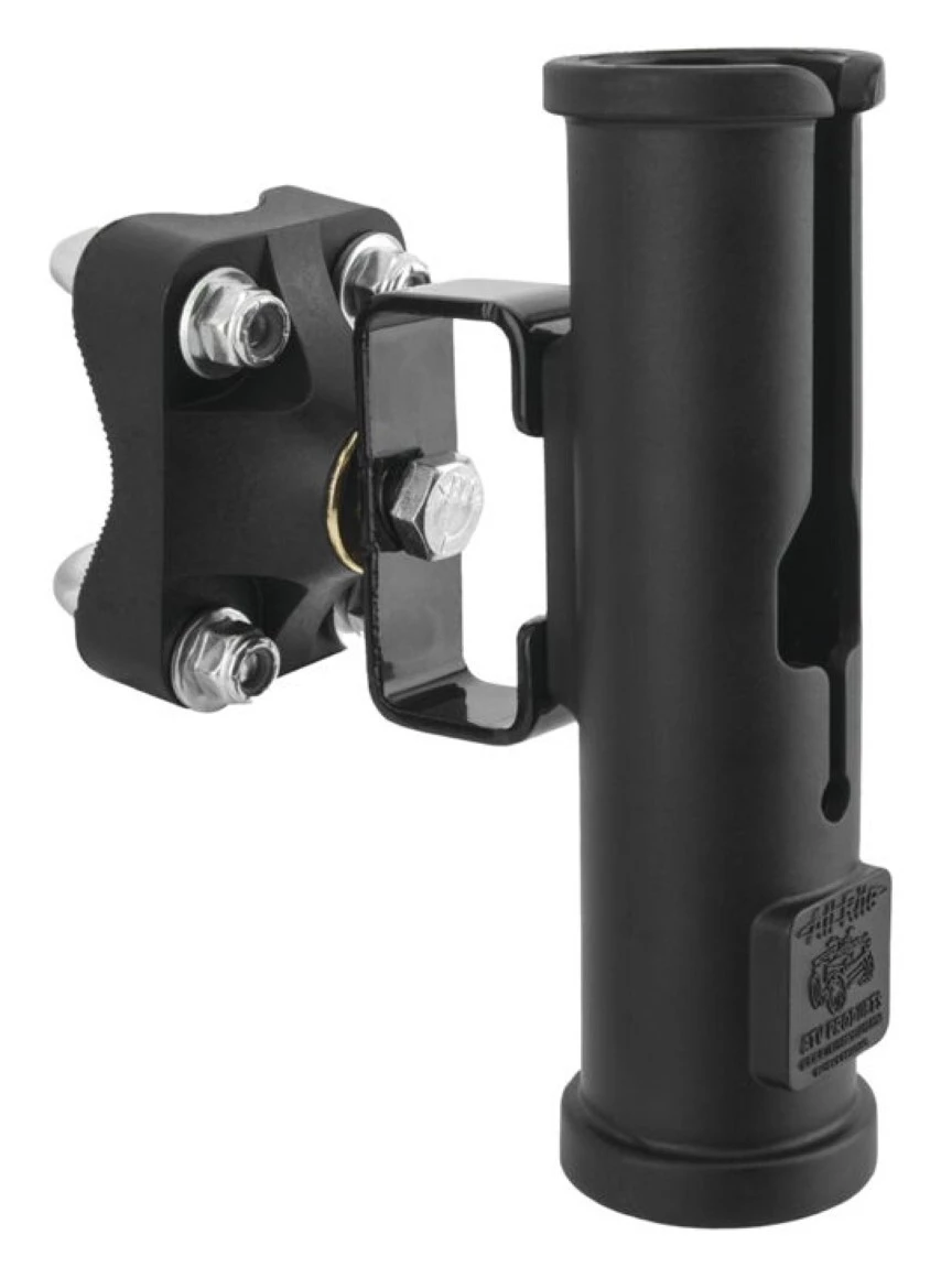 The Quad Boss Rod Holder transports spinning reel fishing rods on ATVs, UTVs and even motorcycles. Available in single or double rod holders, the units accommodate reels with mounting stems up to 1/2″ and attach to cargo racks, tubing or frame sections from 1/2″ to 1″ in diameter.