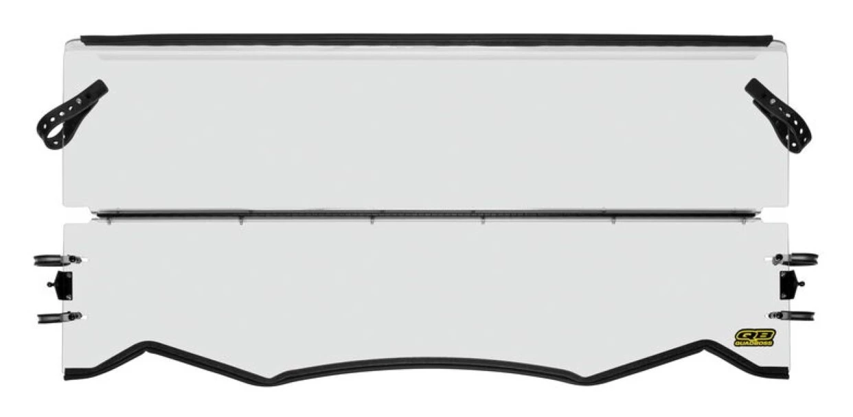 The QuadBoss UTV Folding Windshields use thick 0.177″ polycarbonate resin for excellent optical clarity and toughness. Upper and lower panels can be folded up or down independently when not fully deployed for ventilation. Operation is also tool-less once installed. Mounting hardware is stainless steel with a rubber coating to isolate vibration and protect painted mounting surfaces. These model-specific units are contoured for a flush, factory tight fitment that reduces unwanted wind noise and intrusion.Â