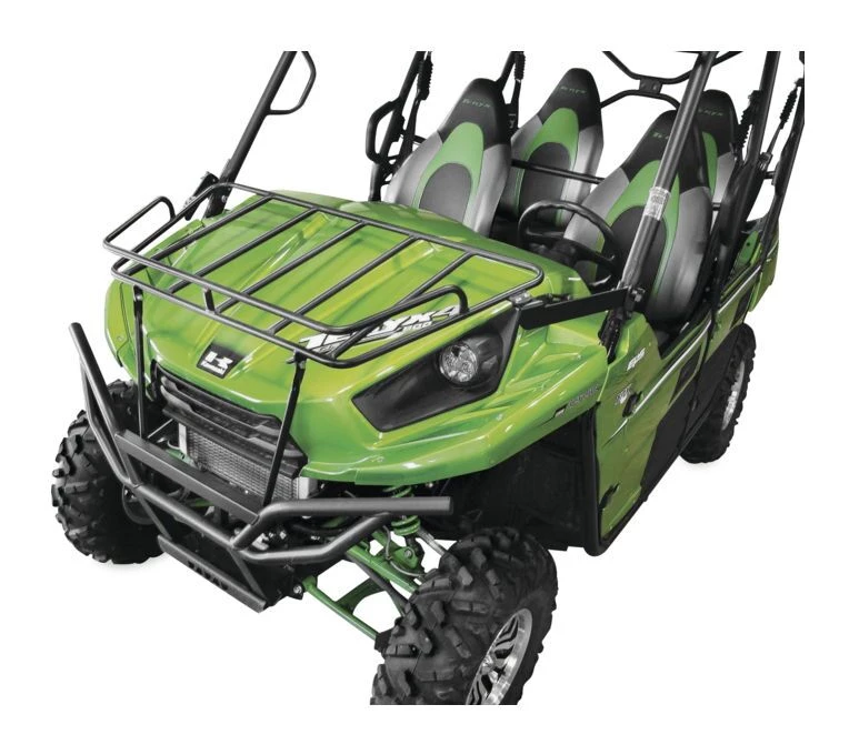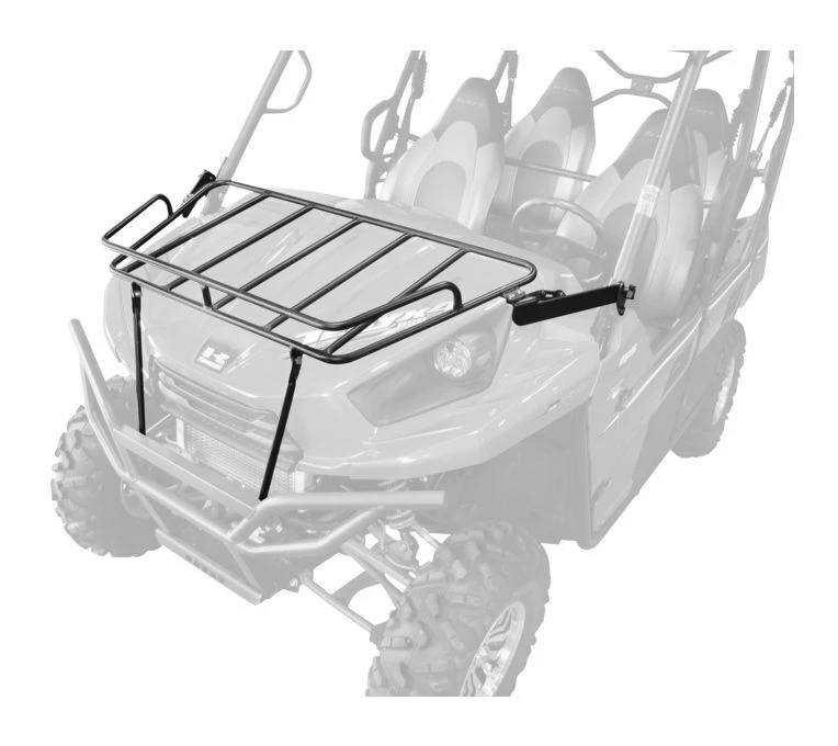 Increases carrying capability without drilling or modifications. Holding up to 80 lbs. of gear, the Universal Front Rack’s wraparound front extension prevents cargo from sliding off during the ride.